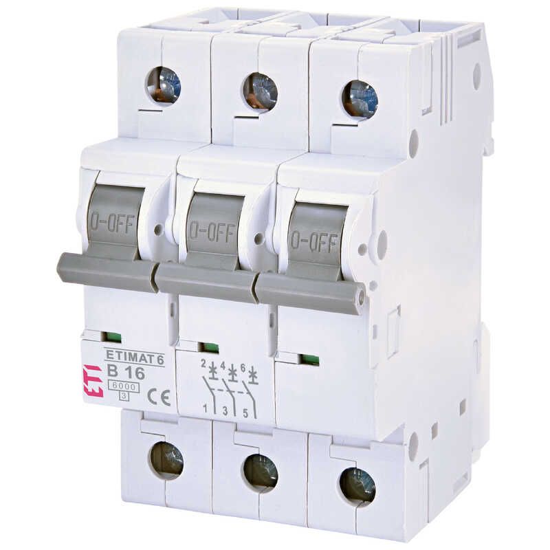 Jistič 3-fázový 16A/400V/B na DIN lištu. Vypínací charakteristika: B