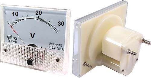 Panelový analogový voltmetr rozsah 0-30Vss, 80x65mm