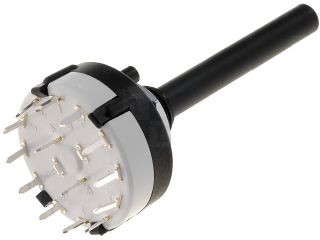 Otočný přepínač 3x4 polohy do plošného spoje, oska pr.6mm, celkový pr.27.5mm, 0.15A/250V