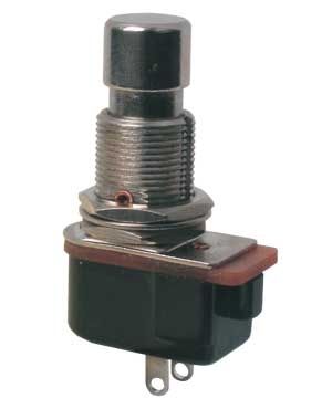 Přepínač tlačítko kul.ON-(OFF) 12V kov, bez aretace.